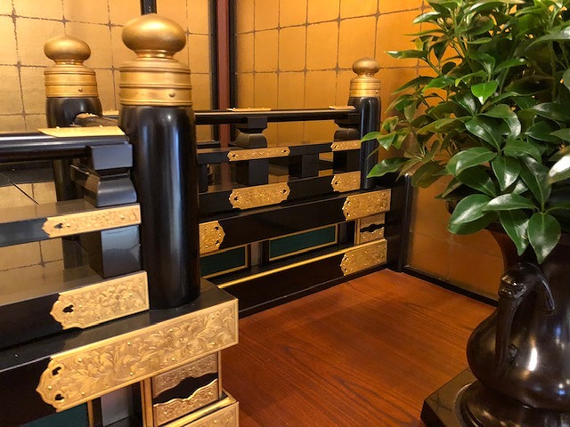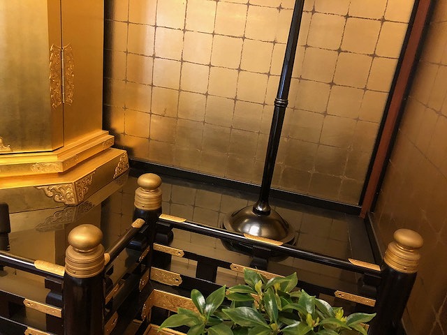 お寺の内陣や仏具。特に宮殿や厨子の内側にもします。